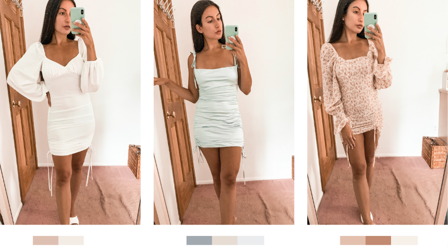 Modern Romance Dress: This is the dress you need to make your post-quarantine club debut (when the day comes). This mini also has slightly adjustable side drawstrings but is pretty short. Ideal for you if you’re on the shorter side, 5’5″ or below, like myself. (sold out in green, the pink version is linked)