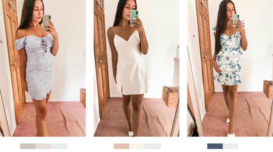 Debut Dress: This dress is the perfect dress to have in your wardrobe for brunches and bridal showers. It can be worn on or off the shoulder and has a flattering slightly ruched body. Fits true to size and hits slightly above the knee.
