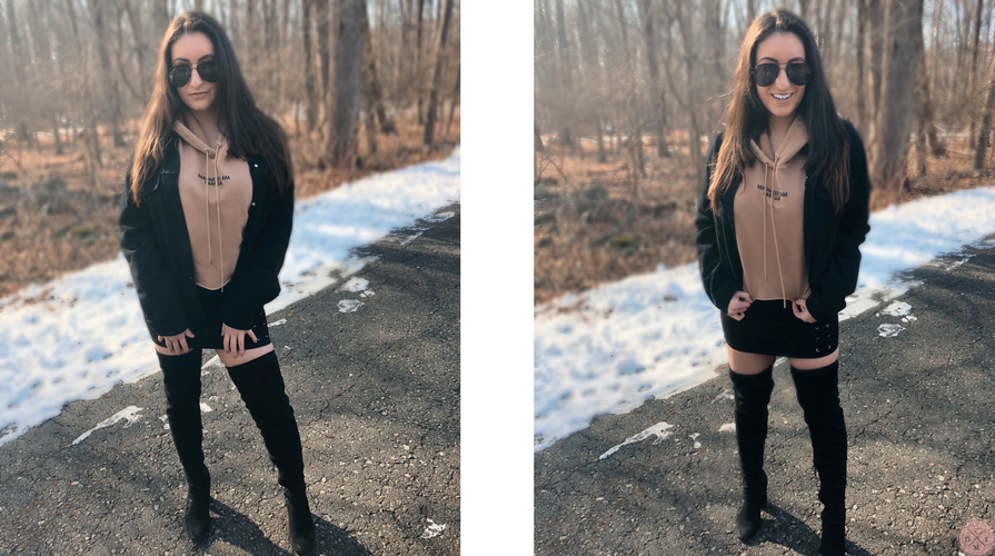 Ever want to pull of that effortless off-duty model style like that of Kendall and Kaia but don’t want to drop $800 on a high price point sweatshirt? Well Alana Pallister has your back. Her line I. AM. GIA that launched in May is what all your favorite supermodels are wearing off-duty and in their latest instas. The best part, all pieces are under $300 with athleisure pieces under $100. It is the perfect cool girl aesthetic with a NY street style vibe. Here I paired the I Am Madness sweat with a lace-up mini and over-the-knee boots. I also wore their plaid mini skirt here.  I really love this brand. The quality is there and it’s a name that is going to be sticking around for some time. Be sure to shop all their pieces here and my curated selections below. xo 😉